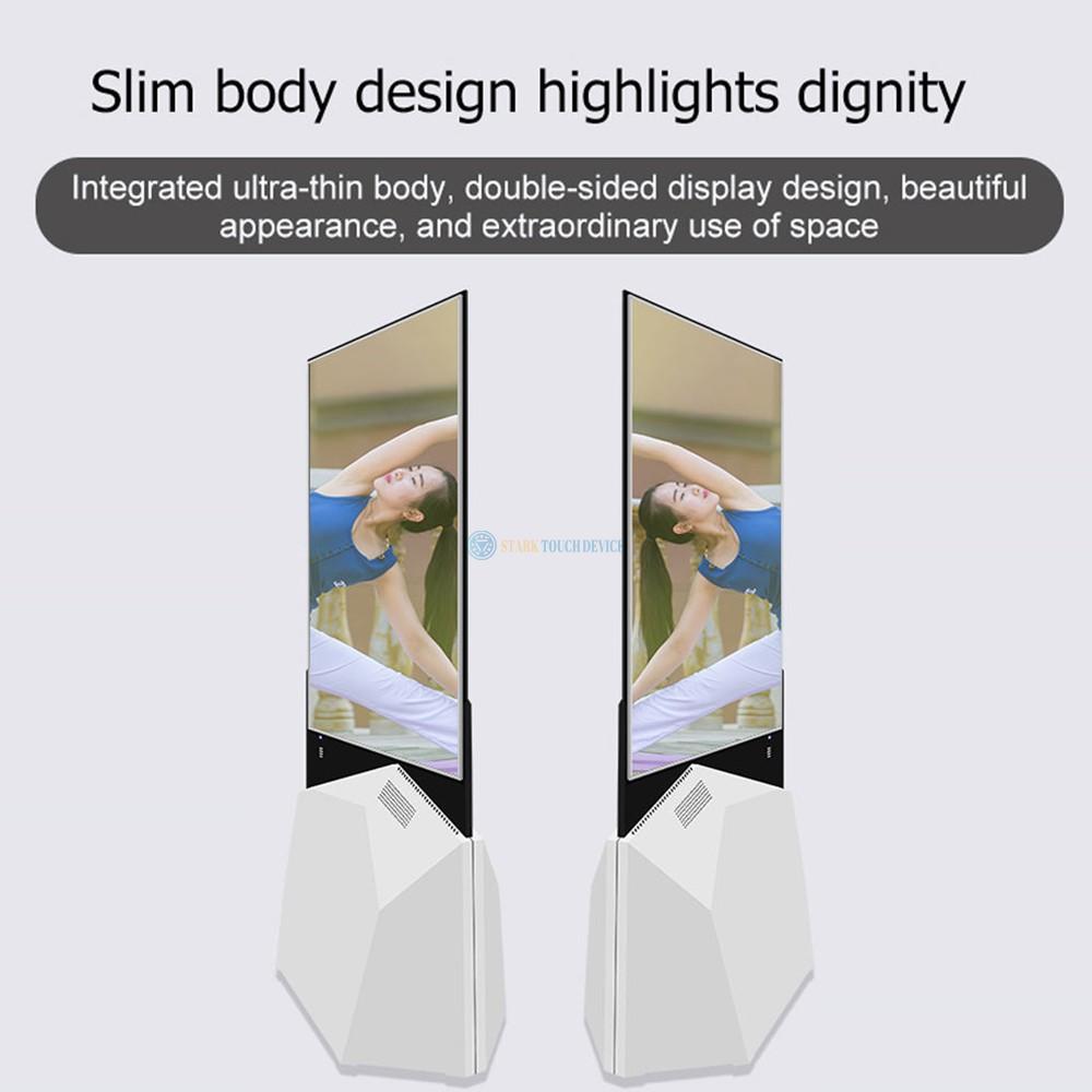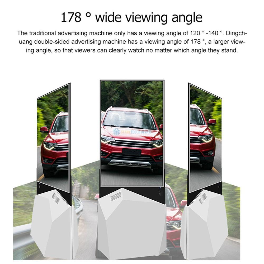A2: Yes, the digital signage allows for dual-screen content display, meaning you can show different content on each side.